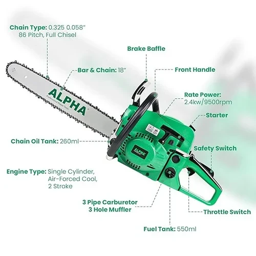 DCA Petrol Chain Saw is a powerful and heavy-duty cutting machine designed for fast and efficient wood cutting. Equipped with a high-performance 2-stroke petrol engine, it delivers strong cutting power for trees, logs, and timber. Ideal for forestry work, construction, and agricultural use.